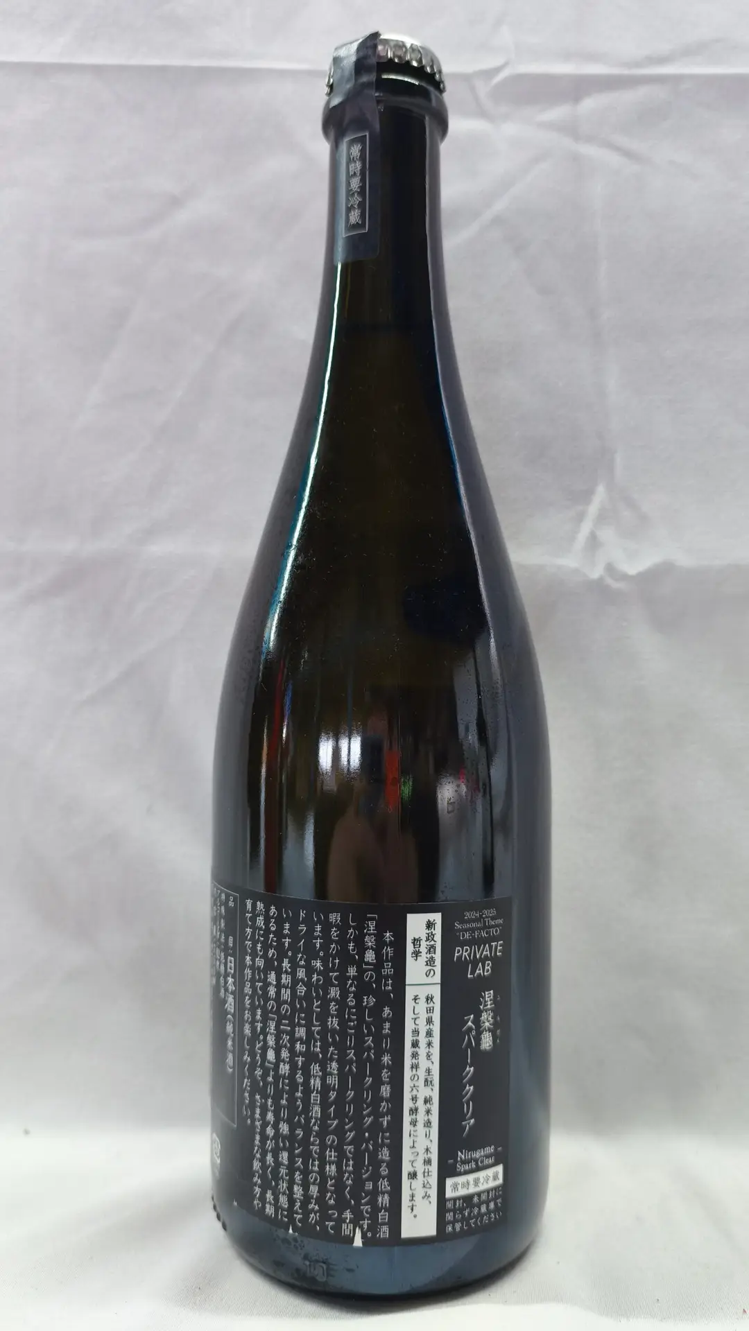新政酒造 PRIVATE LAB(プライベートラボ)より、発泡タイプの純米酒「涅槃龜」。瓶内発酵による自然なガス感と鮮やかな酸味が特徴です。軽快で透明感のある飲み口に仕上げられており、冷酒での提供に適しています。要冷蔵管理品。